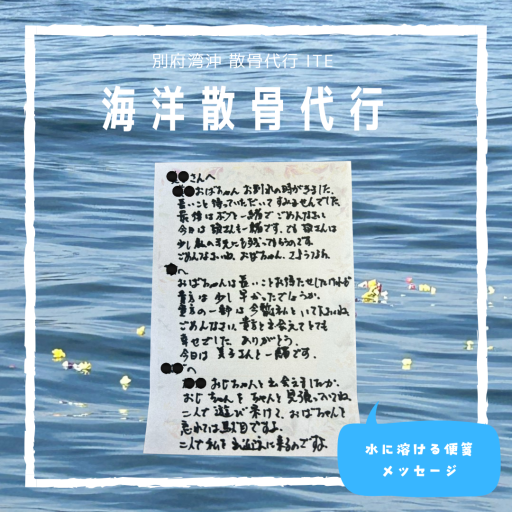 延岡よりお越しのお客様の海洋散骨を別府湾沖縄にて執り行いました。